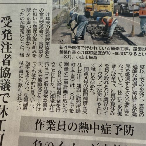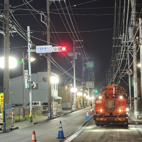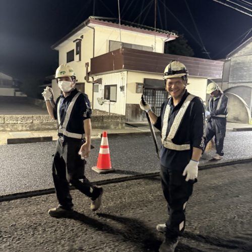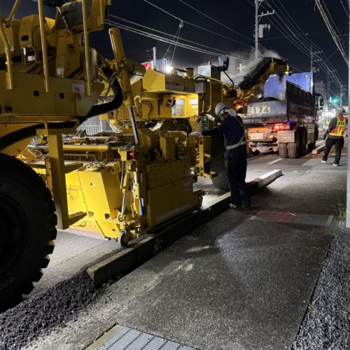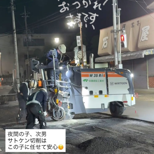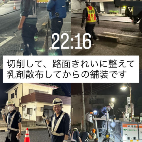 👷♂️いつもお世話になっております。夏休みは、みなさんいかがお過ごしでしたか🍉休み明けのサトケンは、初っ端から昼間の舗装工事があり熱中症の心配がつきません😭。無理のない施工、身体の安全を優先にお願いいたしますね。 新聞にもありましたが、道路工事に関して気遣いが見られるようですね🌞 真夏の建設業は、耐え難いもので命に関わることとなってきます。こうした対応が一般的になるよう、どんどん創意工夫していきましょう!!国よ🇯🇵お願いしますよ!! さてさて、こちらの現場は渋滞を避けるため、熱中症を防止するために、さくら市氏家街中を通る『上高根沢氏家線 舗装修繕工事』夜間工事の様子です。直射日光がないだけでも、暑さに対してのストレスが全然違います。スタッフの皆さんも、表情が健やかです☺️これなら、安心。とはいえ、気温は30℃湿気もあり、ファンベストは必須です。 夜間で視界が悪いので、照明を煌々とつけて安全確保します。 3日間、切削・舗装のタイトな工程お疲れ様でした。明けは、ゆっくり休んで体内時計🕰️戻してくださいね。