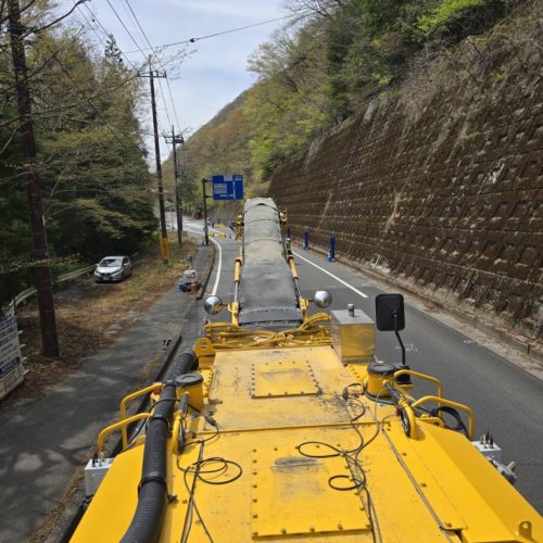 鬼怒川の、切削オーバーレイの様子です。一年生も、先輩の指導のもとICT施工のための